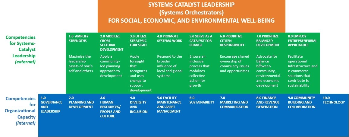 Competencies for SYSTEMS CATALYST LEADERSHIP build the capacity of neutral orchestrators and ecosystem builders (an emerging new discipline) who play a vital role in uniting and merging the collective wisdom of businesses, social purpose organizations, government entities, and community members. Not all individuals within an organization, business, government, or community will require these competencies (skills, knowledge, and attitudes) because they are focused on competencies identified as essential for transformative innovation and systems change in the broader community.