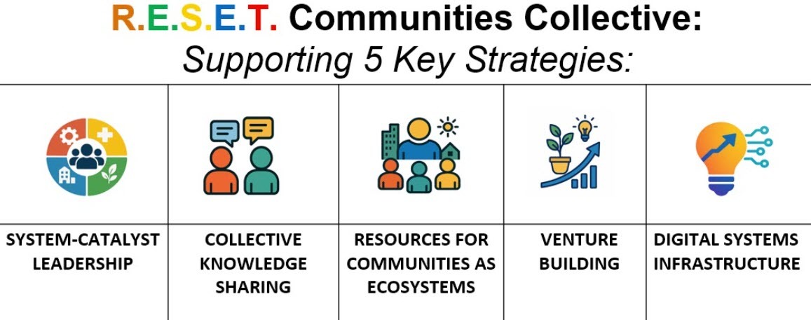Leveraging IT systems and AI-driven tools, this strategy establishes the digital backbone for ongoing support of two interconnected networks: a (1) Community of Practice (CoP) for Systems Catalysts and an (2) local and regional Integrated Platforms connecting communities, neighbourhood members, and networks. Digital infrastructure enables coordination, learning, and real-time adaptation across the RESET ecosystem and to scale beyond.